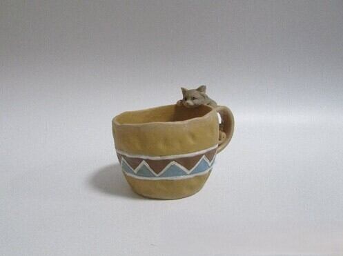 カップに乗った猫の姿は、リビングや書斎、どこにでもぴったりのアイテムであり、空間を楽しく彩ります。